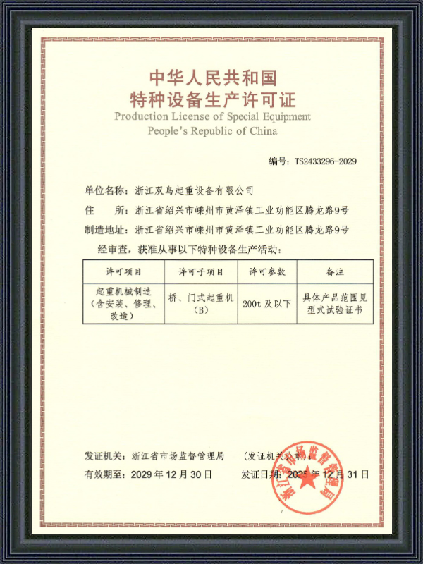 Productielicentie voor speciale apparatuur van de Volksrepubliek China
