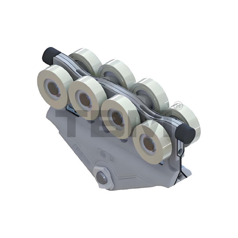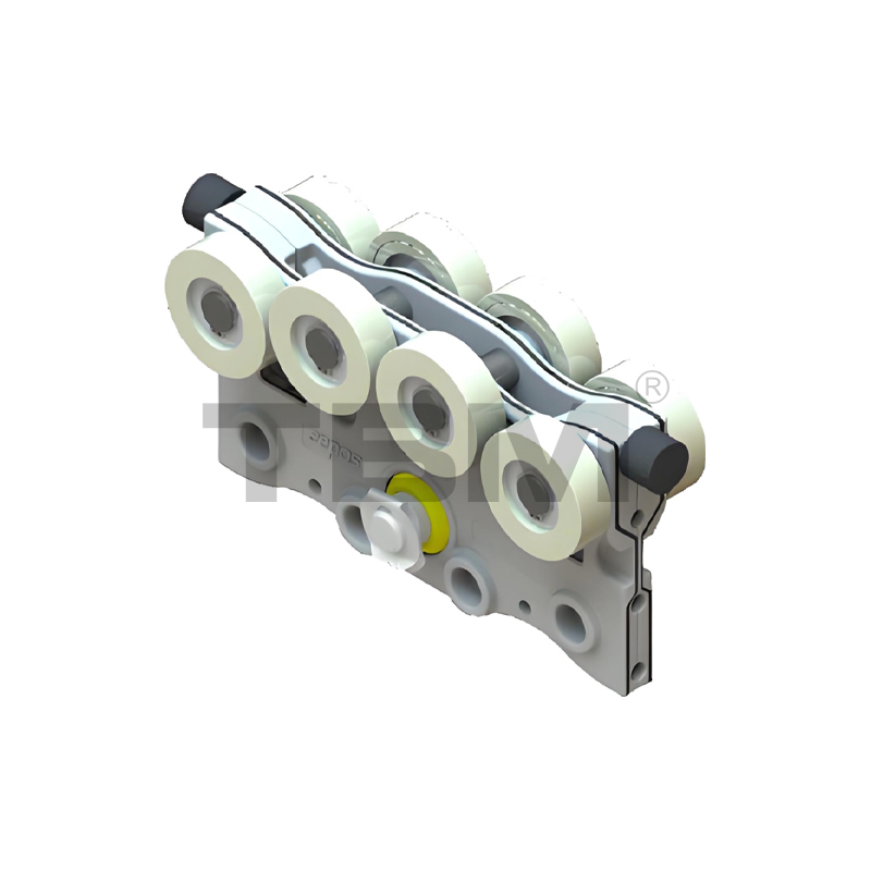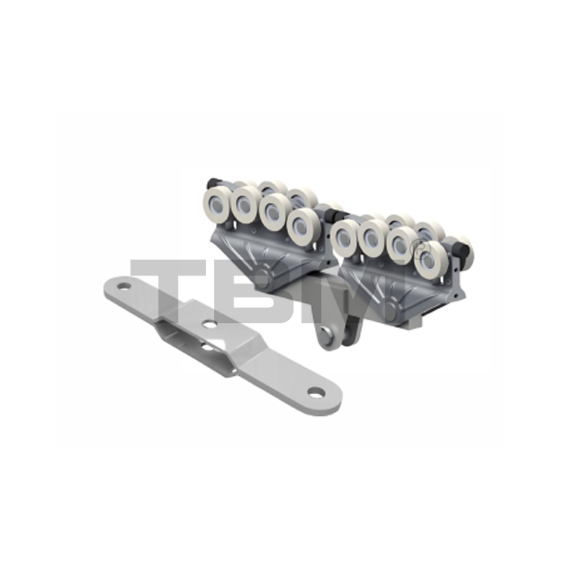 ■ De trolley is gegoten/gesmeed uit zeer sterk, slijtvast nylon voor soepel glijden en eenvoudige bediening. Two rows of upper and lower rollers provide pry-resistant and anti-bias protection.