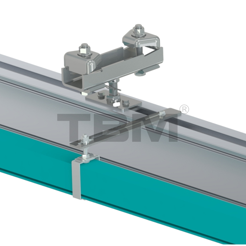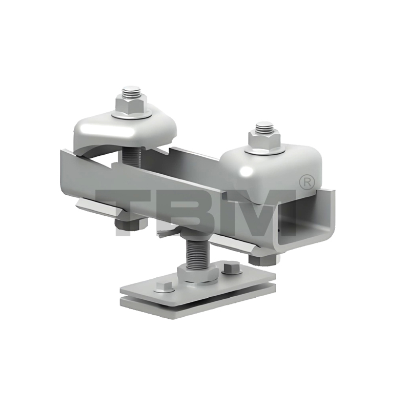 ■Een ophangbeugel voor stroomrails, met flexibele aanpassing.