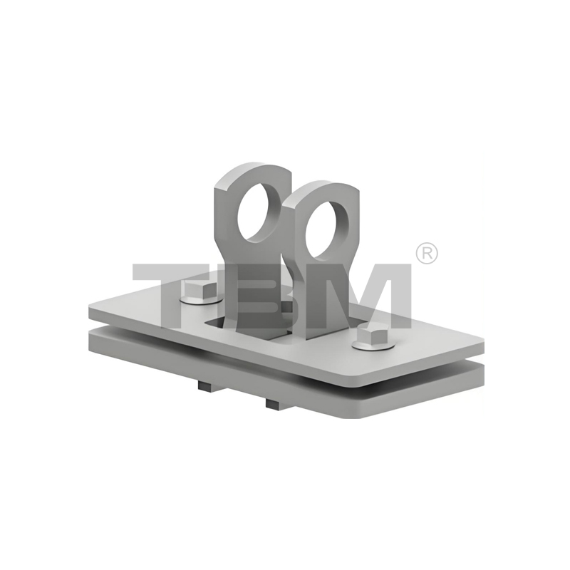 ■ Flexibele hijspunten worden veel gebruikt in railsystemen. De verbinding tussen het onderste deel van het hijspunt en de flensplaat maakt gebruik van een bolvormige structuur. Deze flexibele structuur biedt een hoog draagvermogen.