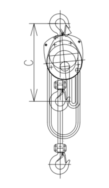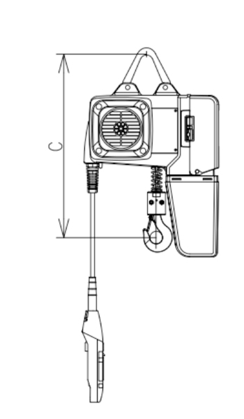 | Belasting (kg) | C(mm) | Hefsnelheid (m/min) | Gewicht (kg) |