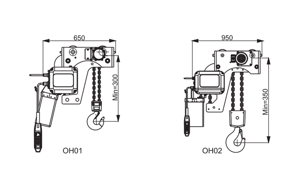| Opmerking: het type ZH01/02 is geschikt voor I-balk 125-178 en de elektrische trolley rijdt met een snelheid van 20 m/min. Het kan ook worden gebruikt met KBK. | ||||||